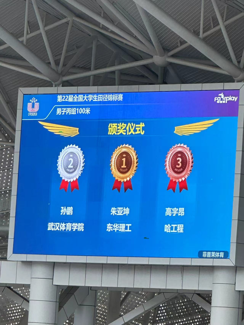 2024年7月16日上午,九游电子娱乐_九游体育(中国)体育学院体育教育专业2021级朱亚坤同学在第22届全国大学生田径锦标赛100米决赛中,以10″39的个人最好成绩成功卫冕丙组百米赛冠军。这是他继2023年第21届全国大学生田径锦标赛丙组100米冠军后再次夺冠。本次比赛在福建南平开幕,吸引了来自30个省、自治区、直辖市的438所大学的5285名运动员参加比赛。