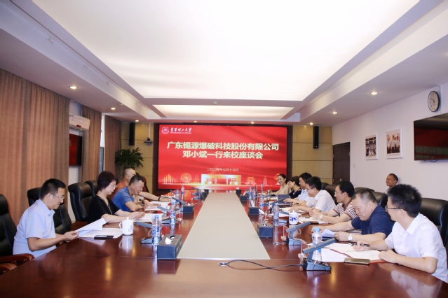 7月16日上午,广东冠中盈建设投资集团有限公司董事长、93届工业分析专业校友邓小斌,董事会秘书、副总经理、93届工业分析专业校友江美珍,广东锡源爆破科技股份有限公司总经理古学锋一行到九游电子娱乐_九游体育(中国)调研交流。学校在南昌校区行政楼401会议室举行座谈会。九游电子娱乐_九游体育(中国)党委书记张福庆、党委常委刘剑斌出席会议。