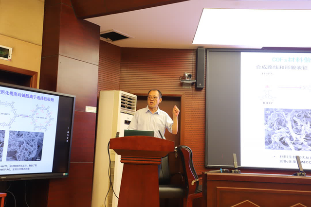 王祥科教授做了题为“多孔纳米材料精准构筑及其对放射性核素高效分离”的报告。他从铀资源的重要性角度出发,介绍了海水提铀的现实意义和面临的核心技术难点,详细阐述了偕胺肟COFs材料在吸附/光催化提取铀方面的独特优势,重点分享了其研究团队近年来在精准构筑功能化偕胺肟COFs材料及在放射性核素分离领域取得的重要科研成果。