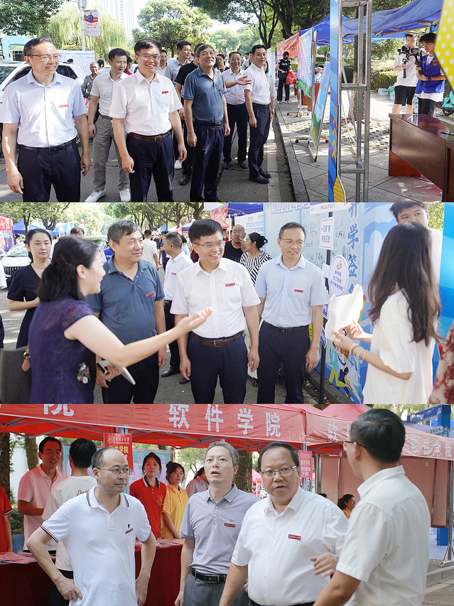 校领导一行先后走访了校门报到入口、迎新志愿服务站、各学院迎新点、学生组织及社团展示区、新生宿舍等,仔细查看迎新工作的各个环节,详细了解新生报到情况,并与新生及家长亲切交流、合影留念。