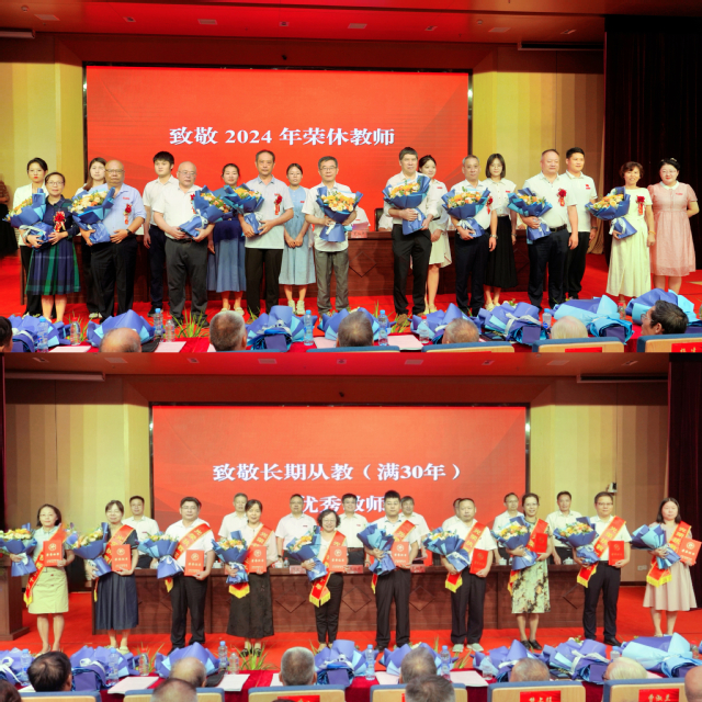 张福庆强调今年是第40个教师节,是中华人民共和国成立75周年,也是学校加快推进高质量发展的关键之年,广大教职工要坚定崇高的理想信念,大力弘扬教育家精神,不断提升教书育人本领,自觉把对党和国家的忠诚、对教育事业的赤诚和对学生的真诚融为一体,争做立德修身的模范;要涵养求真务实的作风,筑牢扎实的知识功底、锻炼过硬的教学能力,勤勉教学态度、科学教学方法,在落实立德树人的根本任务上行稳致远,争做敬业立学的模范;要提高自我身份认同感,在传承“大先生”风范上久久为功,努力成为学生道德的引导者、思想的启迪者和心灵的开拓者,用严管和厚爱去呵护每一个学生的成长,争做教书育人的模范。