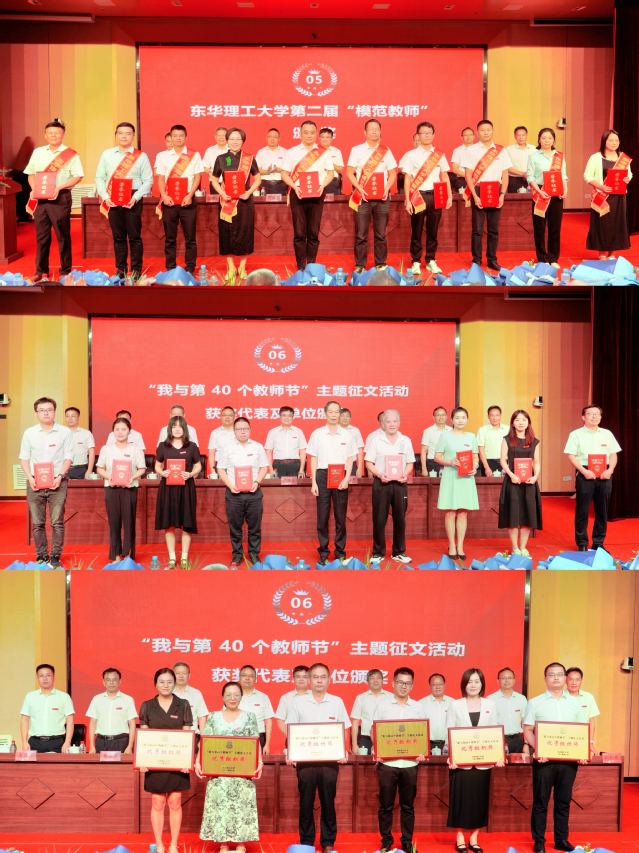 9月10日下午,九游电子娱乐_九游体育(中国)在南昌广兰校区实验大楼一楼报告厅举行庆祝第40个教师节暨表彰大会。校党委书记张福庆出席并讲话,校党委副书记、校长罗仙平主持会议并宣读中国核工业集团有限公司向我校发来的教师节慰问信。在家校领导及教职工代表400余人参加大会。