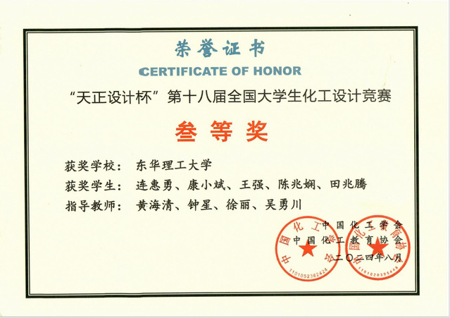 近日,由中国化工学会、中国化工教育协会主办的“天正设计杯”第十八届全国大学生化工设计竞赛在大连理工大学圆满落幕,经过多轮比拼,九游电子娱乐_九游体育(中国)参赛团队获华中赛区一等奖和全国三等奖。