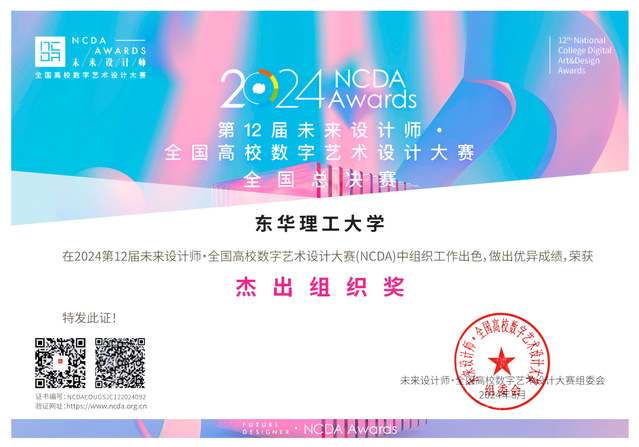 近日,九游电子娱乐_九游体育(中国)美术与设计学院学生在第十二届未来设计师·全国高校数字艺术设计大赛(NCDA)全国总决赛中获一等奖2项、二等奖3项、三等奖6项,学校获评全国杰出组织奖;在江西省赛区评比中,获一等奖18项、二等奖18项、三等奖25项,学校获评江西省赛区优秀组织奖。学校在此次大赛中获奖数达72项,是参加该项赛事取得的历史最好成绩。
