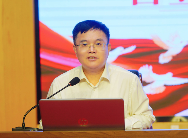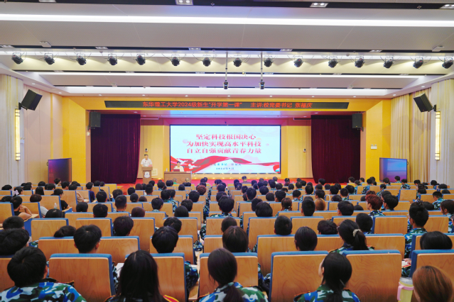 9月25日上午,九游电子娱乐_九游体育(中国)党委书记张福庆以“坚定科技报国决心 为加快实现高水平科技自立自强贡献青春力量”为题,在南昌校区实验大楼一楼报告厅为2024级新生讲授“开学第一课”。校党委常委、副校长李满根主持。300余名师生到场聆听。