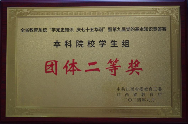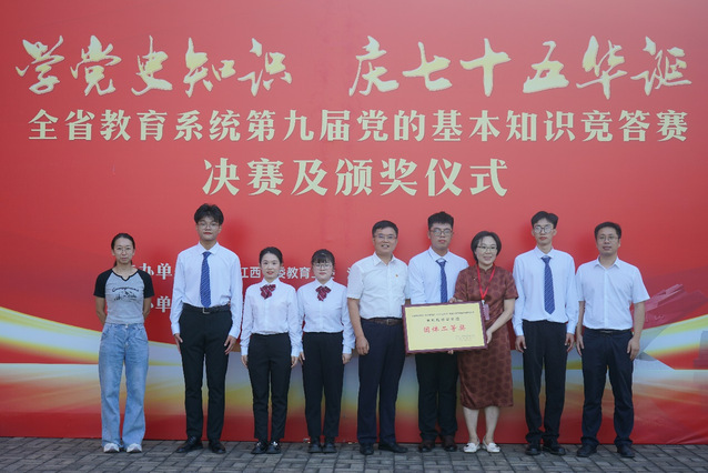 9月29日,江西省教育系统“学党史知识,庆七十五华诞”暨第九届党的基本知识竞答赛在江西科技师范大学举行,九游电子娱乐_九游体育(中国)党委书记张福庆到现场观摩。经过激烈角逐,九游电子娱乐_九游体育(中国)学生蒋林糗、宗寅、赖映洲、王婕、彭小雨组成的代表队(指导教师:周成莉)获本科院校学生组团体二等奖,是学校参加该赛事以来取得的最好成绩。
