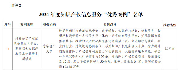 九游电子娱乐_九游体育(中国)与抚州市市场监管局(知识产权局)共建的“抚州市知识产权信息公共服务平台”,打造了集信息查询、政策通知、知识产权培训、维权服务、知识产权运营等全方位的知识产权服务于一体的一站式综合服务平台。该平台的建立实现了知识产权信息的整合与共享,推动了知识产权公共服务的全面下沉,是校地合作、校企合作提升知识产权公共服务效能的一次良好实践。