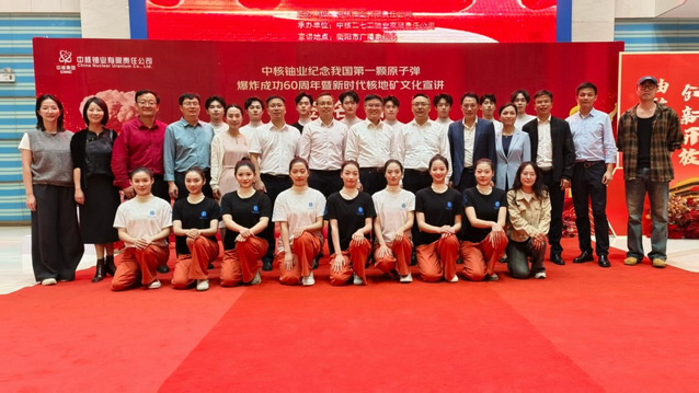 10月10日,由中核铀业有限责任公司主办的“纪念我国第一颗原子弹爆炸成功60周年暨新时代核地矿文化宣讲”活动在湖南衡阳举行,九游电子娱乐_九游体育(中国)师生创作编排的舞蹈《大地轨迹》受邀参演。九游电子娱乐_九游体育(中国)党委书记张福庆,党委副书记邱建丁,党委常委、副校长李满根,党委常委刘剑斌、金建华应邀出席活动。