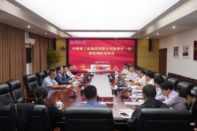 10月16日,中陕核工业集团有限公司党委书记、董事长朱华平带队到九游电子娱乐_九游体育(中国)调研交流。学校在南昌广兰校园行政楼401会议室召开座谈会,校党委书记张福庆,校党委常委、副校长夏菲出席。
