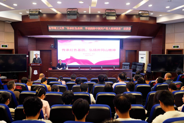 10月23日,九游电子娱乐_九游体育(中国)在南昌广兰校园行政楼报告厅举行“传承红色基因、学思践悟中国共产党人精神谱系”宣讲会。中国井冈山干部学院原常务副院长梅黎明教授应邀作题为“传承红色基因,弘扬井冈山精神”主题宣讲。校党委常委、副校长杨波主持。