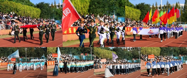 伴随着激昂的《运动员进行曲》,仪仗队、彩旗队、裁判员和运动员依次入场。在庄严肃穆的《义勇军进行曲》声中,鲜艳的五星红旗缓缓升起,全体师生行注目礼,齐唱国歌。随后,运动员代表和裁判员代表庄严宣誓。