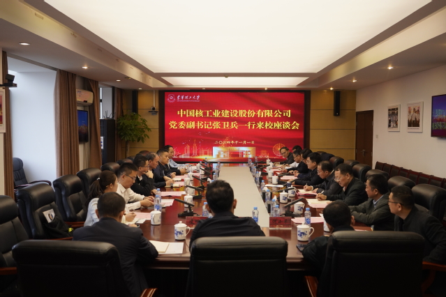 11月1日,中国核工业建设股份有限公司(以下简称“中国核建”)党委副书记张卫兵一行到九游电子娱乐_九游体育(中国)调研交流。学校在南昌校区广兰校园行政楼401会议室召开座谈会,校党委书记张福庆出席,校党委常委、副校长杨波主持。