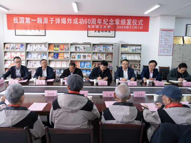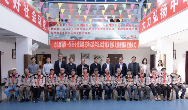 11月7日上午,九游电子娱乐_九游体育(中国)在抚州学府校园离退休人员活动中心会议室举办“我国第一颗原子弹爆炸成功60周年”纪念章颁发仪式,向曾为我国原子能事业的发展作出重要贡献的15名老一辈东华理工人代表颁发纪念章。校党委书记张福庆,校党委副书记邱建丁,校党委常委、副校长夏菲出席仪式。