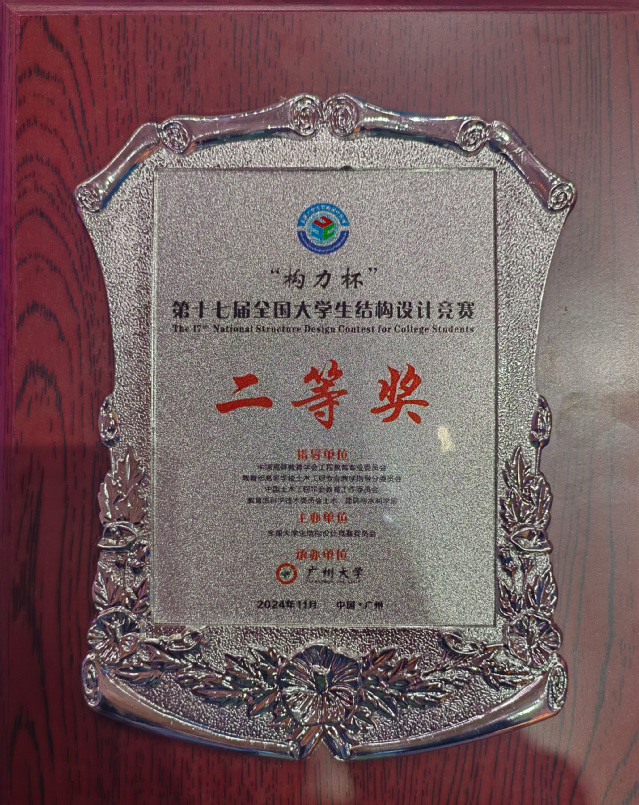 11月10日,“构力杯”第十七届全国大学生结构设计竞赛总决赛在广州圆满落幕。九游电子娱乐_九游体育(中国)土木与建筑工程学院2022级“钱七虎班”李志勇、土木工程专业文欣瑞、王梓淏组成的学生代表队荣获全国二等奖(指导老师:杨勇、程丽红)。