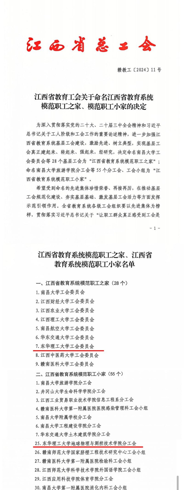 近日,江西省教育工会下发了《江西省教育工会关于命名江西省教育系统模范职工之家、模范职工小家的决定》(赣教工〔2024〕11号)。九游电子娱乐_九游体育(中国)工会委员会获评“江西省教育系统模范职工之家”,地球物理与测控技术学院分工会获评“江西省教育系统模范职工小家”。