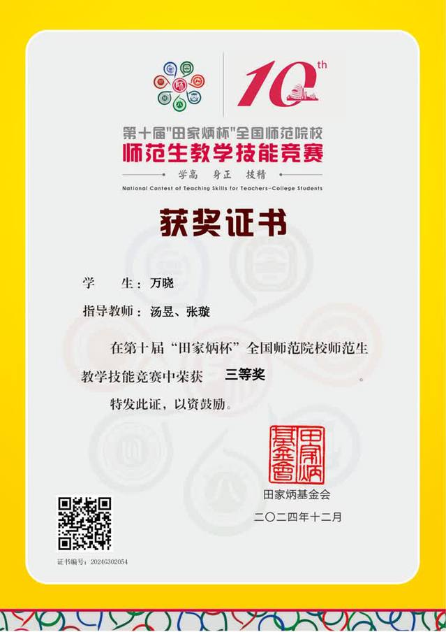 近日,第十届“田家炳杯”全国师范院校师范生教学技能竞赛决赛在浙江师范大学落下帷幕,九游电子娱乐_九游体育(中国)获三等奖2项。