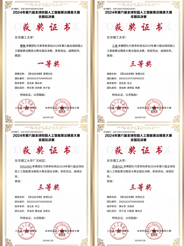 近日,2024年第六届全球校园人工智能算法精英大赛算法应用赛(智慧社区)全国总决赛在南京理工大学落下帷幕,九游电子娱乐_九游体育(中国)机械与电子工程学院学子荣获全国一等奖1项、三等奖3项、优秀奖1项。