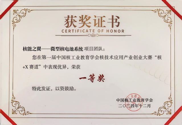 12月18日,由中国核工业教育学会主办,中国核工业教育学会产教融合分会、同方股份有限公司、中国同辐股份有限公司等单位联合承办的第一届“中国核工业教育学会核技术应用产业创业大赛”颁奖大会在西安举行。九游电子娱乐_九游体育(中国)获一等奖1项、三等奖1项、潜力奖1项,学校被授予“优秀组织奖”。
