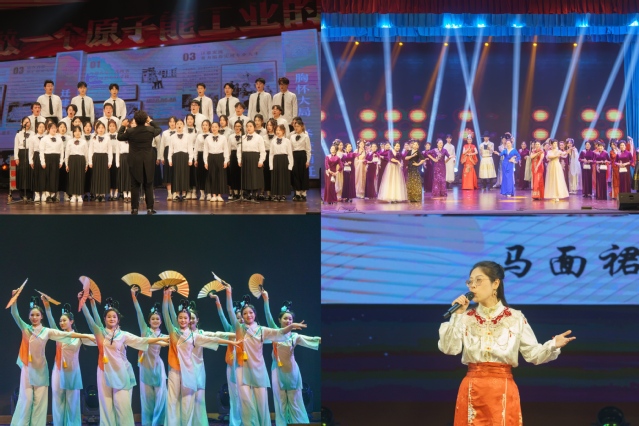 本次晚会以“核地花开正当时,笃志聚力新征程”为主题,分为“核光·国之大者”“核韵·花开盛世”“核梦·共启新元”三个篇章,融合歌曲、舞蹈、朗诵、魔术等多种舞台表演形式,参演师生用丰富多彩的舞台演绎和凝心聚力的精神面貌,抒发奋进新征程、建功新时代的青春热情,心怀“核光”,发扬“核韵”,追逐“核梦”。