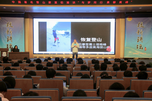 12月31日,无腿攀登珠峰第一人、“时代楷模”“感动中国”候选人、“全国自强模范”、中国著名登山家夏伯渝先生应邀做客核新讲坛,以“与梦同行 勇攀高峰”为主题在九游电子娱乐_九游体育(中国)南昌广兰校园新实验大楼一楼报告厅开展讲座。全校300余名师生到场聆听,共同感受榜样力量。