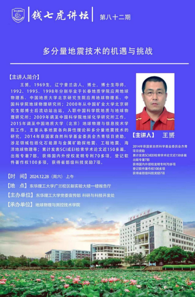 应地球物理与测控技术学院邀请,至中国地质大学(北京)地球物理与信息技术学院博士生导师王费到“九游电子娱乐_九游体育(中国)”以“多分量地震技术的机遇与挑战”为主题开展讲座。欢迎全校师生届时前往聆听。