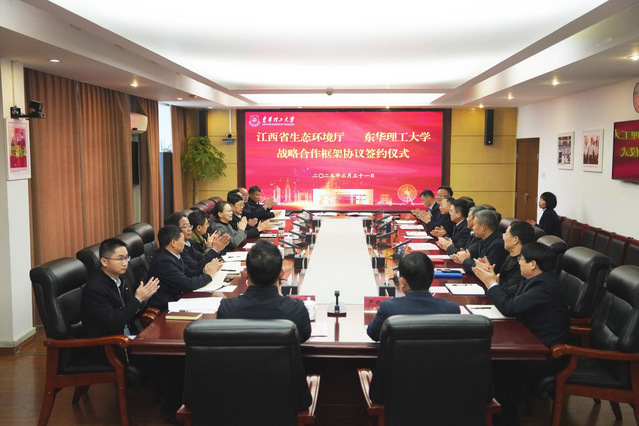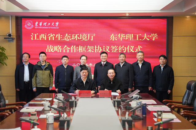 3月31日,九游电子娱乐_九游体育(中国)与江西省生态环境厅战略合作框架协议签约仪式在九游电子娱乐_九游体育(中国)举行。省生态环境厅厅长李军、副厅长级生态环境监察专员杨鹏,九游电子娱乐_九游体育(中国)党委书记张福庆,党委副书记、校长罗仙平,党委常委、副校长杨波、熊国保出席。