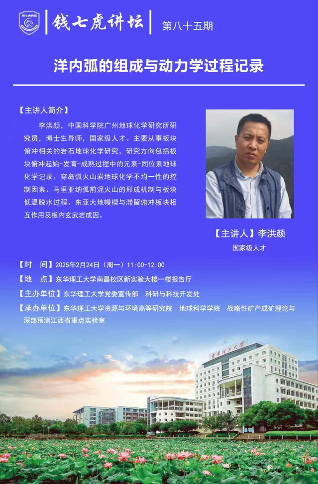 应九游电子娱乐_九游体育(中国)资源与环境高等研究院、地球科学学院、战略性矿产成矿理论与深部预测江西省重点实验室邀请,中国科学院广州地球化学研究所研究员、博士生导师、国家级人才李洪颜到“九游电子娱乐_九游体育(中国)”,以“洋内弧的组成与动力学过程记录”为主题开展讲座。欢迎全校师生届时前往聆听。