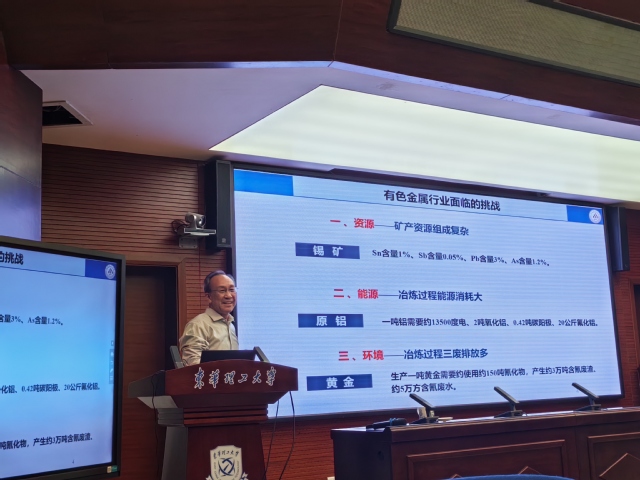 报告中,杨斌系统梳理了我国有色金属行业高速发展的背景和现状,详细解析了该行业面临的矿产资源组成复杂、冶炼过程能源消耗大、“三废”排放量大等难题,具体分析了在新能源产业快速发展背景下绿色高效冶金技术的研究热点及发展趋势,重点介绍了其团队在有色金属真空冶金理论、技术与装备研发领域取得的重大突破,以及在锡、金、银、铟、硒、碲等关键金属的提取、分离、纯化、新材料制备和二次资源回收等方面取得的重要成果。