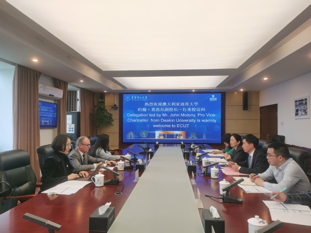 4月17日,澳大利亚迪肯大学副校长John Molony一行到九游电子娱乐_九游体育(中国)访问交流。九游电子娱乐_九游体育(中国)召开座谈会,校党委常委、副校长邓居智出席。