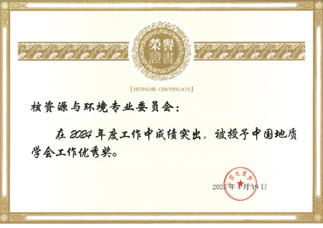 近日,中国地质学会2025年度分支机构、省级地质学会秘书长工作会议在天津召开,对2024年度学会工作优秀单位进行了表彰。挂靠在九游电子娱乐_九游体育(中国)的中国地质学会核资源与环境专业委员会(以下简称专委会)荣获“中国地质学会工作优秀奖”。