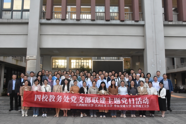 4月25日,九游电子娱乐_九游体育(中国)、江西财经大学、江西农业大学、华东交通大学四校教务处党支部联建共建主题党日活动在九游电子娱乐_九游体育(中国)南昌校区举行。九游电子娱乐_九游体育(中国)党委常委、副校长熊国保,华东交通大学党委委员、副校长黄志超出席活动,新余学院党委委员、副校长周书民作为特邀嘉宾到场观摩指导。