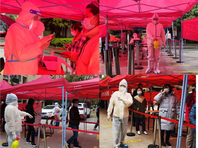 信息采集、环境消杀、维持秩序……3月18日以来,蔡言忙前忙后,不停地为居民做指引、提示、答疑服务。“口罩要戴好”“间隔一米,保持安全距离”“不要急着摘口罩,医生手消毒后再摘”,她每天不厌其烦地重复这几句话。在面对有不良情绪的居民时,她主动上前,耐心沟通、尽力安抚,为年长的居民热心解答疑虑、为情绪焦虑的居民及时提供心理疏导、为调皮的孩子送上安全提示。蔡言换班吃饭都像打仗一样,扒口饭就一路小跑地回到岗位……尽管工作辛苦,但她毫无怨言。